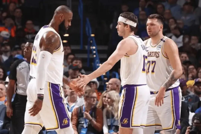 赛后,湖人球员卢卡-东契奇接受了记者采访,并谈到了和詹姆斯、里夫斯之间是如何找到默契的。