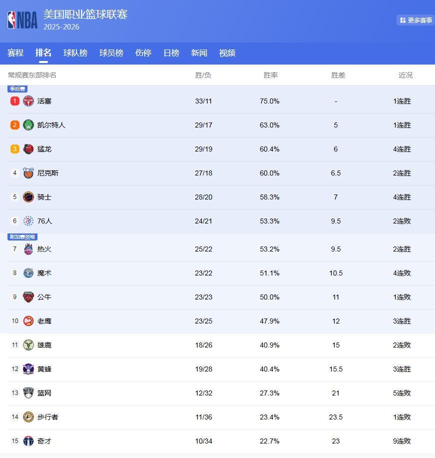 东部最新排名: